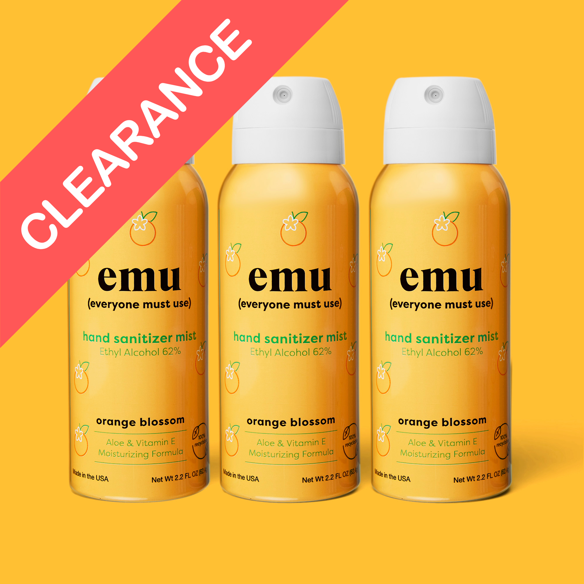 SHORT DATE CLEARANCE SALE Protects you from germs. Eco-Friendly. emu is the only hand sanitizer that feels good, smells good, and does good.